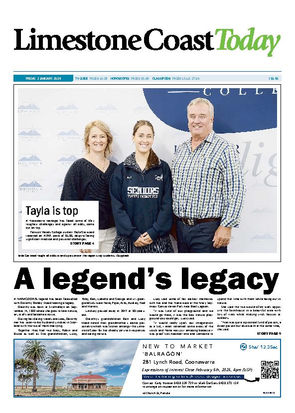Limestone Coast Today – 2nd January 2026 Subscribe or Login to see the rest of the content. Username Password * Remember Me Forgot Password News Foodbank’s work in the Limestone Coast 07/01/2026 One in three Australian households, or 3.5 million households, experienced food insecurity in the past 12 months, according to the Foodbank Hunger Report 2025.... Support given to protect SA coastlines 07/01/2026 THE District Council of Robe is one of six coastal councils along with three community groups sharing more than $1.2 million in grant funding... Kicking off the year with Monthly Medal 07/01/2026 THE Mount Gambier Golf Club recently hosted its first Monthly Medal competition for the year. Stephen Herbert (25) of the C Grade picked up the...