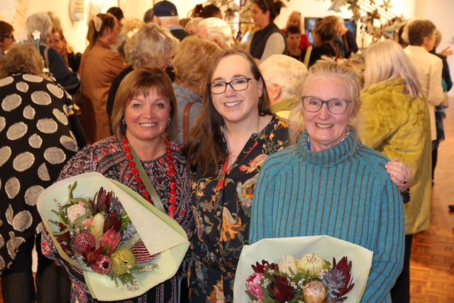 OPENING: Exhibiting artists Selena Smith and Diana Perkins with Dr Rebecca Pannell (centre) who officially opened the Rationally Wasted exhibition. Picture: CAROLINE HAMMAT