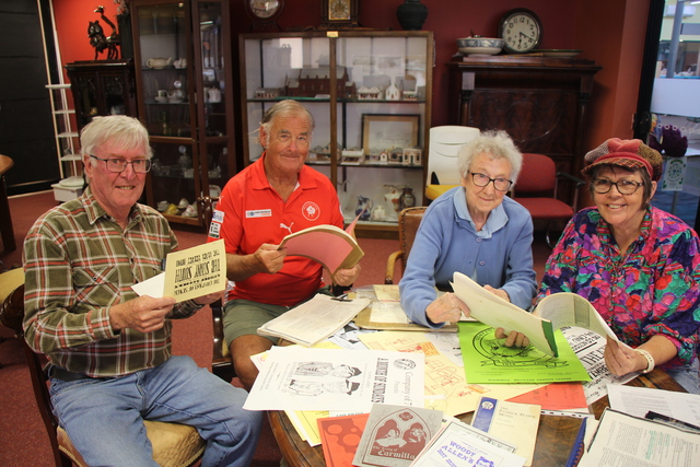 Reminiscing over decades of Company of 7 posters, flyers and scripts were Phil Golding, John O'Connell, Jan Armit and Chris Hollingsworth. (Caroline Hammat: 472559)