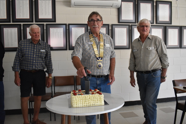 Naracoorte Men's Probus Club president Warwick dew cuts the cake. (Elisabeth Champion)