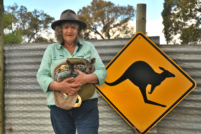Duck-a-Roo Wildlife Sanctuary founder Narelle Marshall, holding two little joeys, hoped there could be more done by the South Australian State Government to aid wildlife shelters and organisations during the drought in the future. (Tyler Redway: 478606)