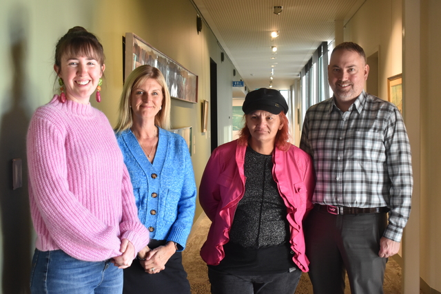 Inclusion Advisory Panel member Belinda Anderson, panel chair presiding member Katherine Greene, interested artist Peggy Hunt and chief executive officer Darryl Whicker welcome the opening of expressions of interests. (Charlotte Varcoe 480858)