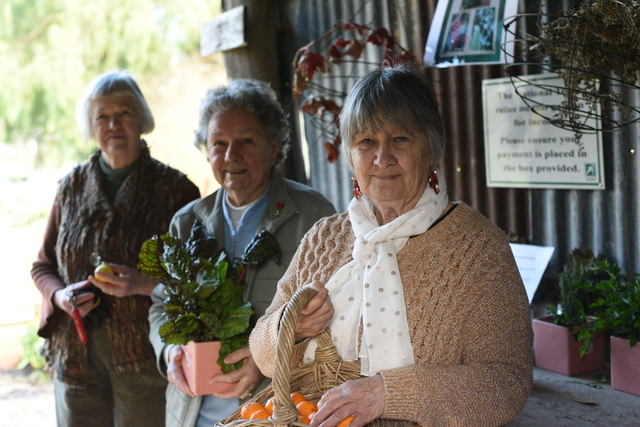 National Trust Penola branch members Christine Dohnt, Evelynne Bowden and Jill Moonie are encouraging people to support and donate to the herb garden. (Charlotte Varcoe 497014)
