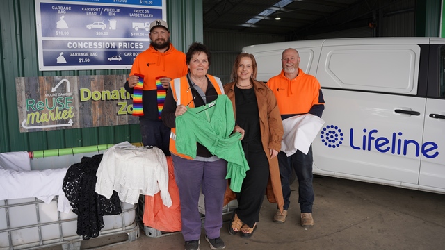 Waste Transfer and ReUse Market attendants Kyal Chapman, Tanis Alexander and Jamie Hunt with Lifeline retail and marketing manager Sarah Eccles-Smith encouraged the community to get involved and give their items a second life. (Supplied)
