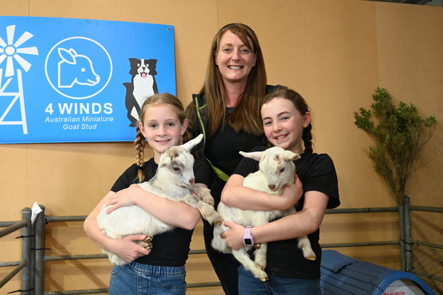 Karley Itzerott, Leni Von Stanke and Isabelle Phillips with two baby goats. (Tyler Redway: 513242)