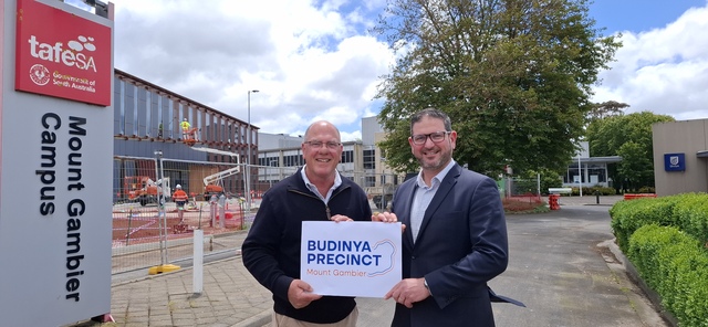 Mount Gambier’s precinct named 08/12/2025 FacebookTwitterEmail Precinct leader Peter Gandolfi and TAFE SA executive director – operations Graham Rix at the Budinya Precinct Mount Gambier. (Supplied) THE leading education, learning and training precinct in Mount Gambier/Berrin has been formally named. The precinct has been named ‘Budinya […] Subscribe or Login to see the rest of the content. Username Password * Remember Me Forgot Password