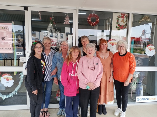 Naracoorte Lifeline Opportunity Shop volunteers Linda Wilson, Lyn Ludwig, Liz Crowley, Bron Johnson, Suzie Gillies, Chris Fox and Deb Gill celebrate 40 years. (Lifeline South East)