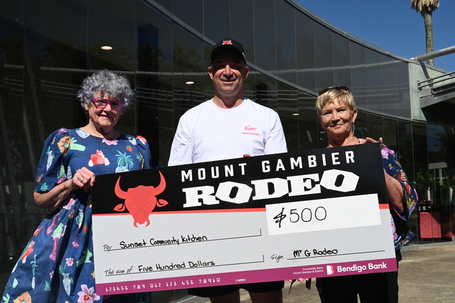 Mount Gambier Rodeo gives back to community 15/12/2025 FacebookTwitterEmail Sunset Kitchen volunteers Marian Simmonds and Maree Thompson with Mount Gambier Rodeo committee member Heath Sims. (Tyler Redway: 524429) Purchase this photo from Pic Store: 524429 Tyler Redway FOLLOWING the success of this year’s Mount Gambier Rodeo, the event has made several donations to local charities in the […] Subscribe or Login to see the rest of the content. Username Password * Remember Me Forgot Password