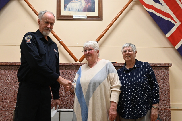 Millicent SES deputy unit manager Andrew Sargeant with Millicent Senior Citizens Club president Sue Looby and secretary-treasurer Heather Carthew. (Tyler Redway: 525785)