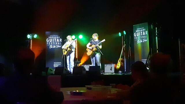 The Boyington Sisters performed at the Adelaide Guitar Festival Roadshow in October 2025 at the Naracoorte Town Hall. (Supplied/Stringybach Photography)