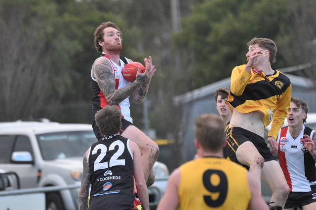 Brady Gibbs takes a strong mark in the Millicent backline. (James Murphy: 491714)