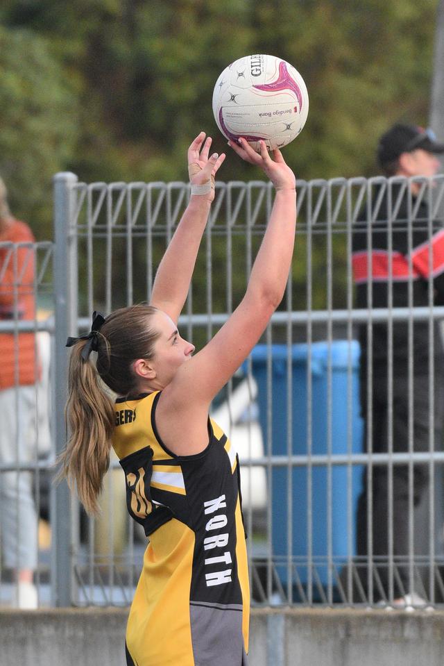 North Gambier goal attack Macey Griffith was strong on the delivery and the finish in Saturday's triumph over the Roos. (File: 495528)