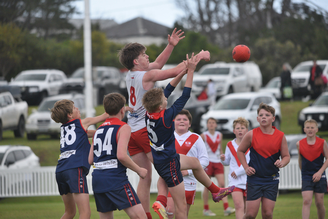 MSEFL U14 Mixed best and fairest, Dylan Thomas (Robe) spoils a marking opportunity during the grand final. (Tyler Redway 507694)