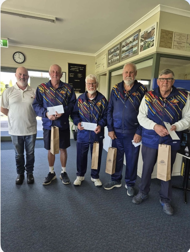 Invitation Fours sponsor Tony Glesson, with winners Graeme Smith, Harry Child, Ralph Stafford and Andy Ashby from Mount Gambier RSL. (Supplied)
