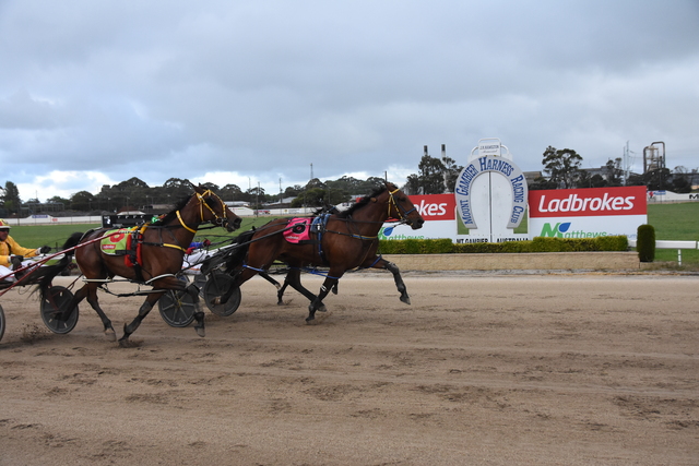 It was no easy pickings for the favourite Colossal Hope (no. 8 in the middle), a narrow winner at the Greenwald Paceway last week as the race was won both on the track and later in the steward's room. (James Murphy 5520525)